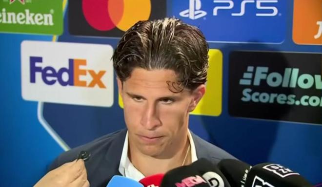 在欧冠1/4决赛首回合客场2-0击败巴萨之后,马德里竞技边锋朱利亚诺-西蒙尼在混采区接受了采访。