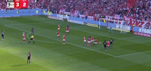 第73分钟,世界波!奥利塞内切圆月弯刀再追一球,拜仁2-3美因茨